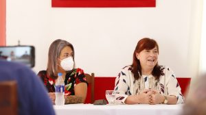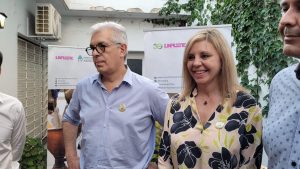 La senadora nacional y candidata a renovar su banca, María de los Ángeles Sacnun, junto al Ministro de Agricultura, Ganadería...