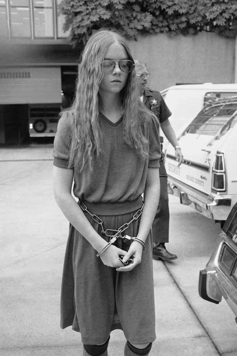 Unos meses después de abrir fuego contra la escuela y de asesinar a dos hombres y herir de gravedad a 8 chicos y un policía, Brenda Spencer de 16 años sale del juzgado después de declarar en una de las audiencias previas al juicio que se llevaría en su contra (AP Photo/Nick Ut)De a poco, escapando de la zona de fuego, sacando a los heridos por la parte de atrás del edificio, la policía fue entendiendo los sucesos. Pese a la enorme cantidad de balas, 30 cinturones de proyectiles, había un solo tirador.
