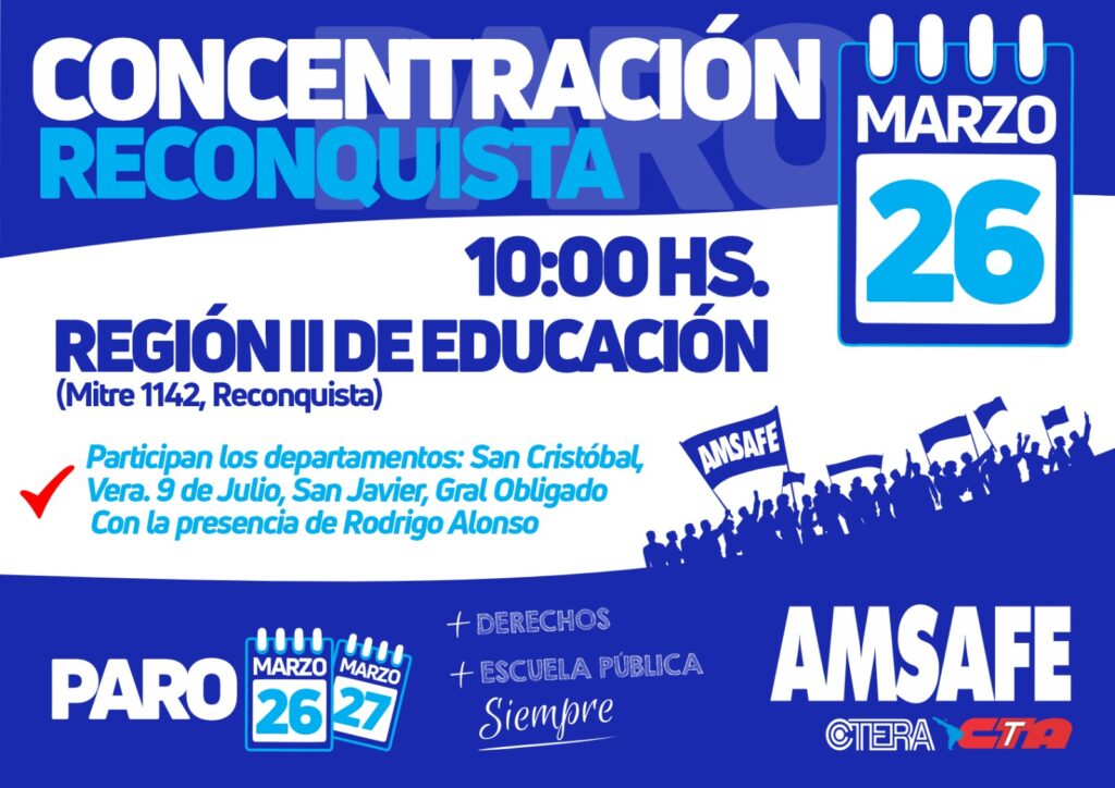 El martes 26 a las 10 hs realizaremos una concentración frente a la Región II de Educación.