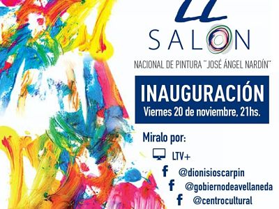 El Gobierno de Avellaneda invita a la comunidad a participar del acto de Inauguración de 22º Salón Nacional de Pintura que tendrá lugar este viernes 20 de noviembre a las 21hs y que se transmitirá a través de las redes sociales oficiales y el canal local LTV+.