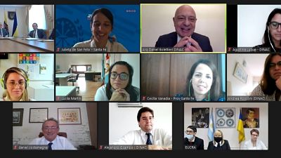 El ministro de Producción, Ciencia y Tecnología, Daniel Costamagna; junto a la secretaria de Cooperación Internacional, Julieta de San Félix; y la Cancillería Argentina, definieron los términos del Convenio Marco de Cooperación con la Administración Estatal de la Región de Odesa, Ucrania.