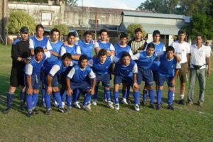 Según los recuerdos de uno de los fundadores, Don Ernesto Hug, “el primer partido “oficial” se realizó contra Guadalupe Norte, y el equipo se trasladó a caballo,… jugaron con camisetas blancas cruzadas por una banda celeste, gorros del mismos color, pantalones con tirantes y arremangados.” (2)