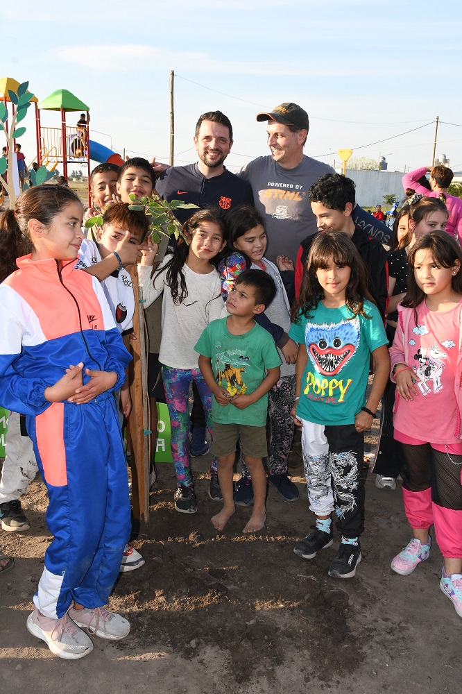 “Seguimos fortaleciendo nuestras políticas de creación y puesta en valor de espacios verdes, trabajando para garantizar derechos a los niños y niñas de la primera infancia”, destacó el Intendente Gonzalo Braidot en el marco de su visita a las actividades de la Liga CRECER, programadas en su cronograma semanal, en un nuevo espacio en B° Belgrano. Durante el encuentro, se plantaron árboles que contempla el proyecto que financia la Unión Europea en nuestra ciudad.