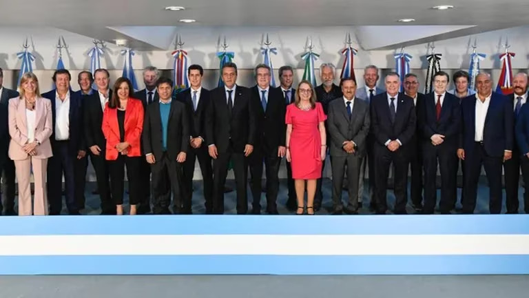 La foto de familia que hicieron los gobernadores en el CFI y que funcionó como muestra de respaldo a la candidatura de MassaEl candidato a presidente de Unión por la Patria (UP), Sergio Massa, se reunió este mediodía con los gobernadores del oficialismo en el Consejo Federal de Inversiones (CFI), para diagramar cómo serán los 21 días de campaña que restan hasta el balotaje con el libertario Javier Milei. Estrategia, territorio y mensaje.