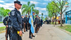 El acto contó con la presencia del Ministro de Seguridad de Santa Fe, Claudio Brilloni, el Senador Orfilio Marcón, el Jefe de la Unidad Regional IX Julio Lucero, el Intendente Roberto Sponton, entre otras autoridades políticas, institucionales y de las fuerzas de seguridad.
