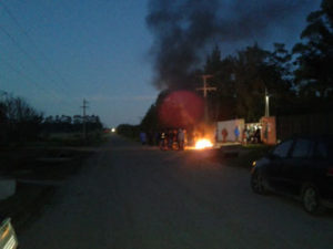 La manifestación comenzó a las 6 de la mañana en los portones principales del frigorífico donde los trabajadores, acompañados por el sindicato, decidieron cerrar los portones y encender fuego.