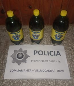 Fecha 17-04-2024 – personal de la Comisaria IV UR IX, se constituyo a paraje Villa Adela, domicilio del ciudadano de 41 años de edad, quien manifestó que dos femeninas causaron disturbios, robaron 5 botellas de Fernandito, otros elementos y se retiraron del lugar, actuantes lograron interceptarlas en Ruta Provincial 32 y Bv. Sarmiento, resultando ser dos mujeres de 22 y 27 años de edad, teniendo en su poder 3 (tres) botellas de “Fernandito” y (01) paquete de toallas femeninas cerrado, por lo que proceden a la APREHENSIÓN de las mismas y al secuestro de los elementos mencionados.