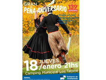 En la semana de un nuevo cumpleaños de la ciudad, el Gobierno de Avellaneda invita a la comunidad a participar de la gran peña 139º Aniversario que se realizará hoy jueves 18 de enero a las 21hs en el Camping Municipal Los Tatané.